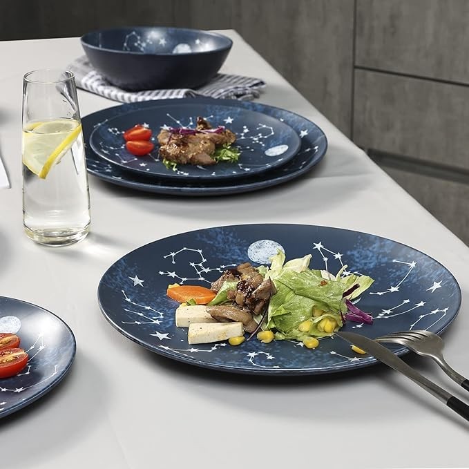 POPULAR STYLE: These melamine bowls and plates are designed with the popular constellation/galaxy pattern, You could see the combination of modern and mysterious, which is very suitable for daily use in the family. Especially good for the party and camping.