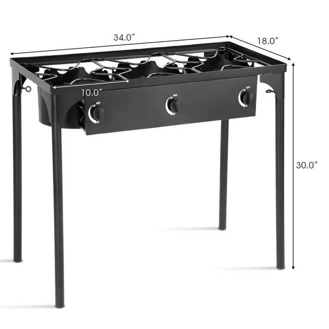 Cooking Ability:This powerful triple burner, equipped with a cast iron head, outputs a whopping BTU of 220000. BTU burners to boil water and cook your food, whether you're tailgating at the football stadium or camping with the family. And adjustable firepower make your cook more delicious