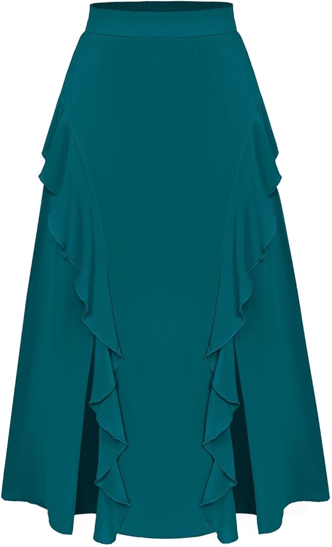 • 【Features】This women's summer midi skirt is featured with elastic high waisted, which can highlight your figure more slimmer. Ruffle trim, 2 side split, below knee length, flowy A-line midi skirt for women.