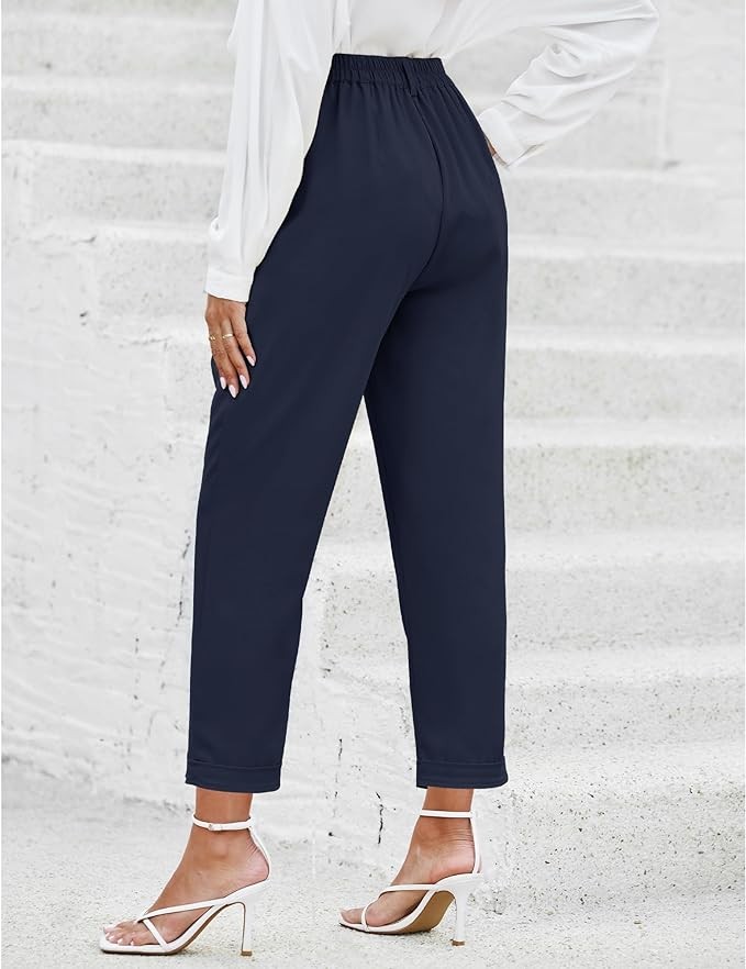 Cropped pants inseam: 25.6''. The pleats in the front and sewn-in cuffed hem create a subtle visual interest and enhance the overall aesthetic, making these womens trousers suitable for more formal occasions.