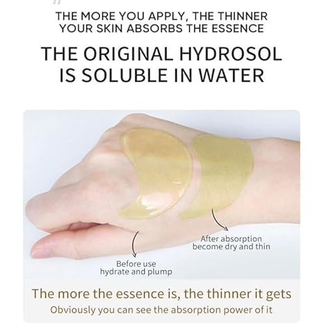 ? Highly effective eye treatment: Our eye patches are useful in decreasing dark circles, visibly reducing the appearance of wrinkles, fine lines and puffiness, accelerating the regeneration of skin cells and collagen around your eyes, restoring elasticity and firming skin to make you look more radiant.Hyaluronic acid in these under eye patches help to hydrate and moisturize your skin, improve dullness, provide deep hydration and it’s s refreshing, non-sticky when uses.