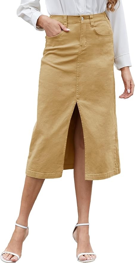 • Fabric:This Front Slit skirt is made of 85% Cotton+10% Polyester+5% Elastane.The fabric is light,soft,comfortable, and has a slight stretch,suitable for spring and summer.