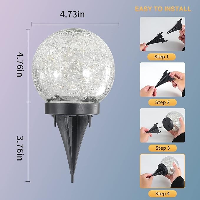 【Unique Crack Design】 Led Lights That Use Solar Technology And Environmental Protection And Energy -Saving. The Sphere Is Made Of Solid And Thick Glass. It Has A Clear And Realistic Crack Effect. The Crack Glass Sphere Emits Warm Lights.