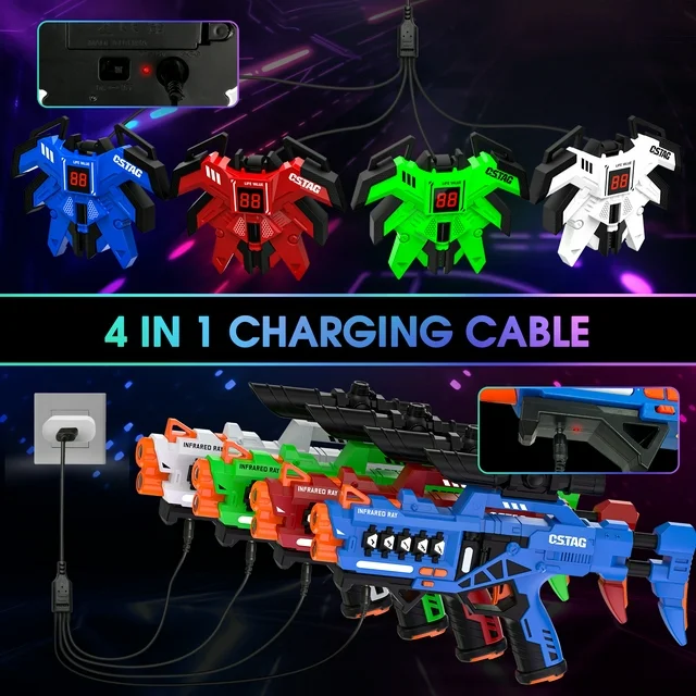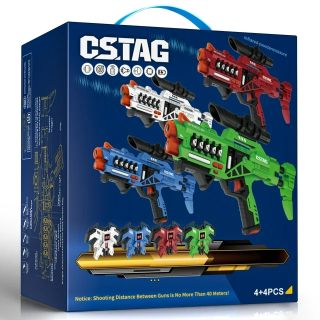 ARCADE STYLE LAZER TAG GAME:Turn your home or backyard into a laser tag arena with the laser tag blaster set,this fully interactive set designed with infrared receivers and light emitters that are fun and reduce the chance of injury.