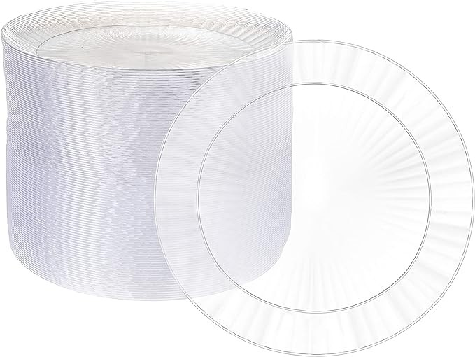 RECYCLABLE OR REUSABLE - Dispose of these 100% recyclable, hard clear plastic plates worry-free after your party, or simply wash and stack them for later events.