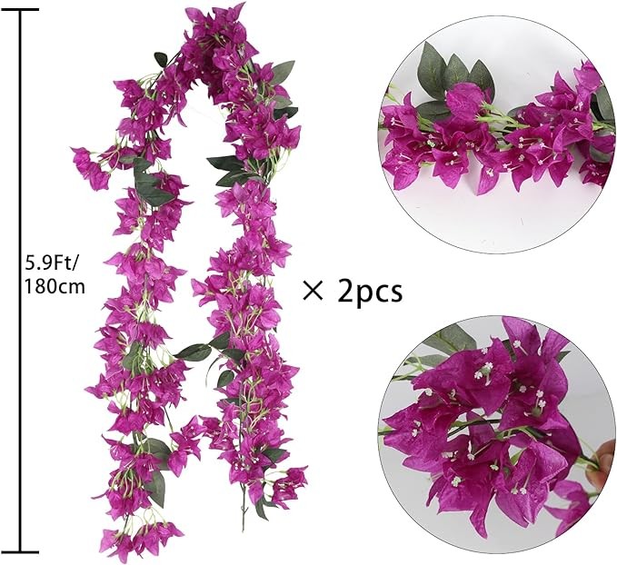 Size & Package: You will receive 2 pcs artificial bougainvillea garlands, each garland has many bougainvillea flowers and leaves. The total length of each garland measures 5.9 Ft
