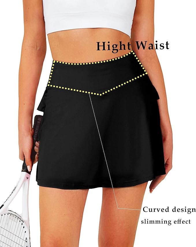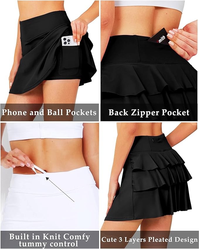 • ??‍♀️【Features 】:16'' Tennis skirts features 2 inside pockets and 1 rear zip pocket with built-in shorts. Pleated skirts for women holds your cell phone, tennis balls, cards or keys without falling out during athletic.