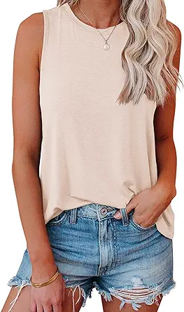 JAWINT Women's Casual Tank Tops Summer Crewneck Sleeveless Tunic Flowy Loose Shirts