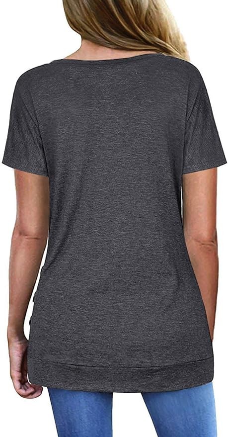 Jescakoo Womens Tops Short Sleeve V Neck Summer Shirts Casual Tunic