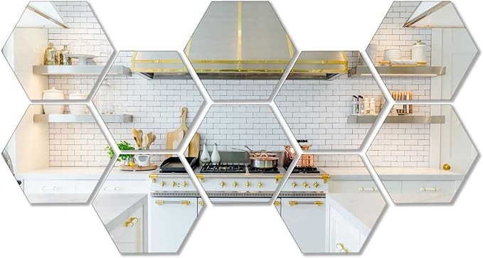 【High Quality Material】Mirror tile self-adhesive is made of glass, the classic hexagonal design gives you a clear picture. After using the mirror wall sticker, your house will look very spacious and bright. It is a good choice for home decoration.