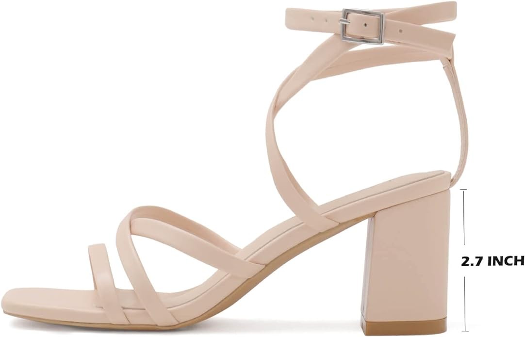 • DESIGN: The block heel is the comfortable height to give you a lift and no need to worry about the foot pain, provide you all day relaxing feelings while showing your grace. Strappy sandals with ankle strap ensure that every step is stable and comfortable.