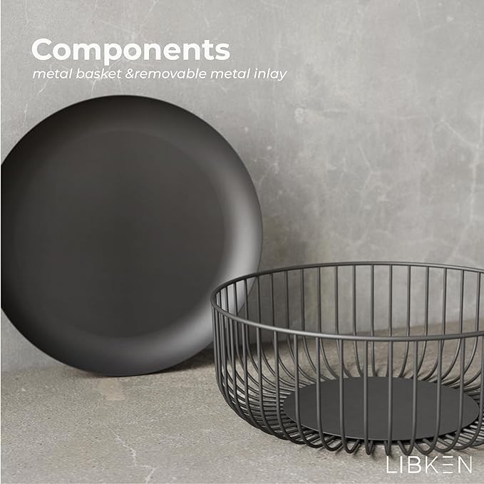 LIBKEN Black Fruit Basket - Stylish Metal Wire Fruit Bowl for Kitchens - Decorative Fruit and Veg Storage Holder - Ideal Kitchen Accessories for Modern Decor - Black, 1 Unit, H4xL11xW11 inches