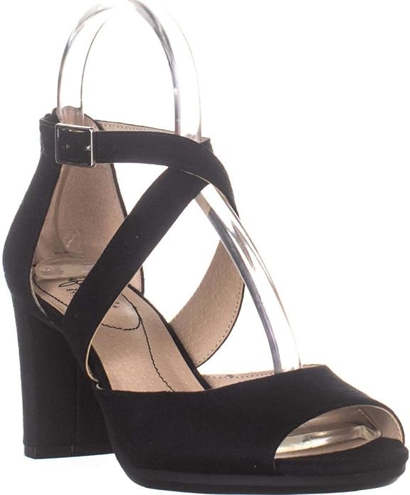 • Microsuede upper with a peep toe, cupped heel, and crisscrossing strap detail with adjustable metallic buckle closure