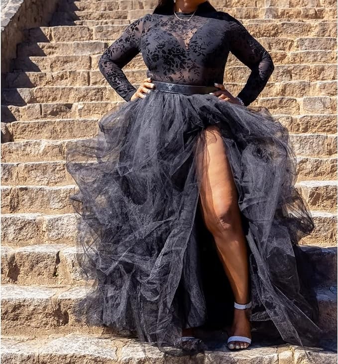 Lisong Women Maxi Tulle Floor Length Layered High Waist Spectial Occasion Skirt