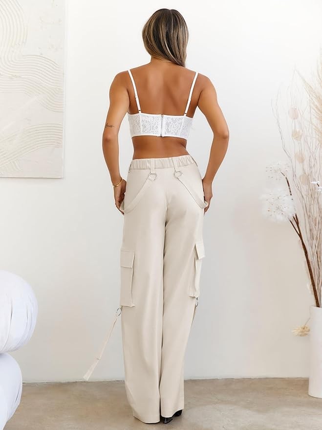 【Material】The cargo pants women baggy, made of great quality cotton blended, breathable and comfortable, lightly micro stretch fabric makes theses ultra-cute pants more chic.
