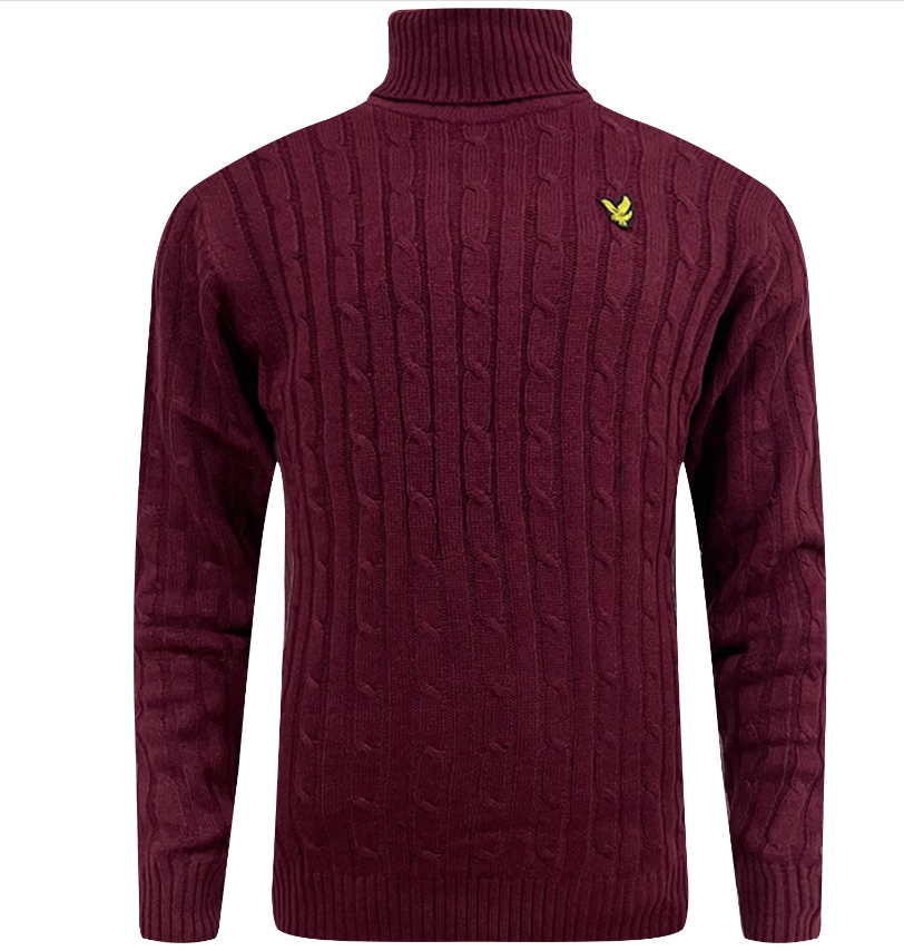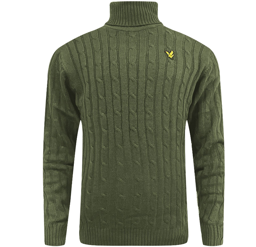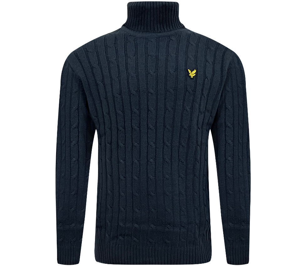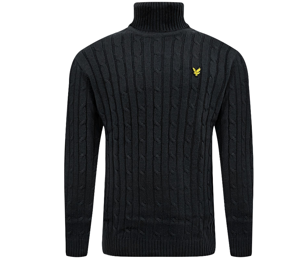 Lyle & Scott Mens Turtle Neck Cable Knitted Roll Up Jumper Polo Sweater Pullover