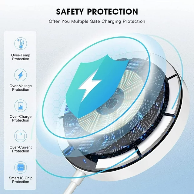 【Superior Safety】The wireless magnetic phone charger prevents the charger and your phone from overcharging, over current, over voltage, over heating, and short circuit. Provides you with a better and safer charging experience.The optimized magnetic design makes charging easier , improving energy conversion and reducing heat while charging.