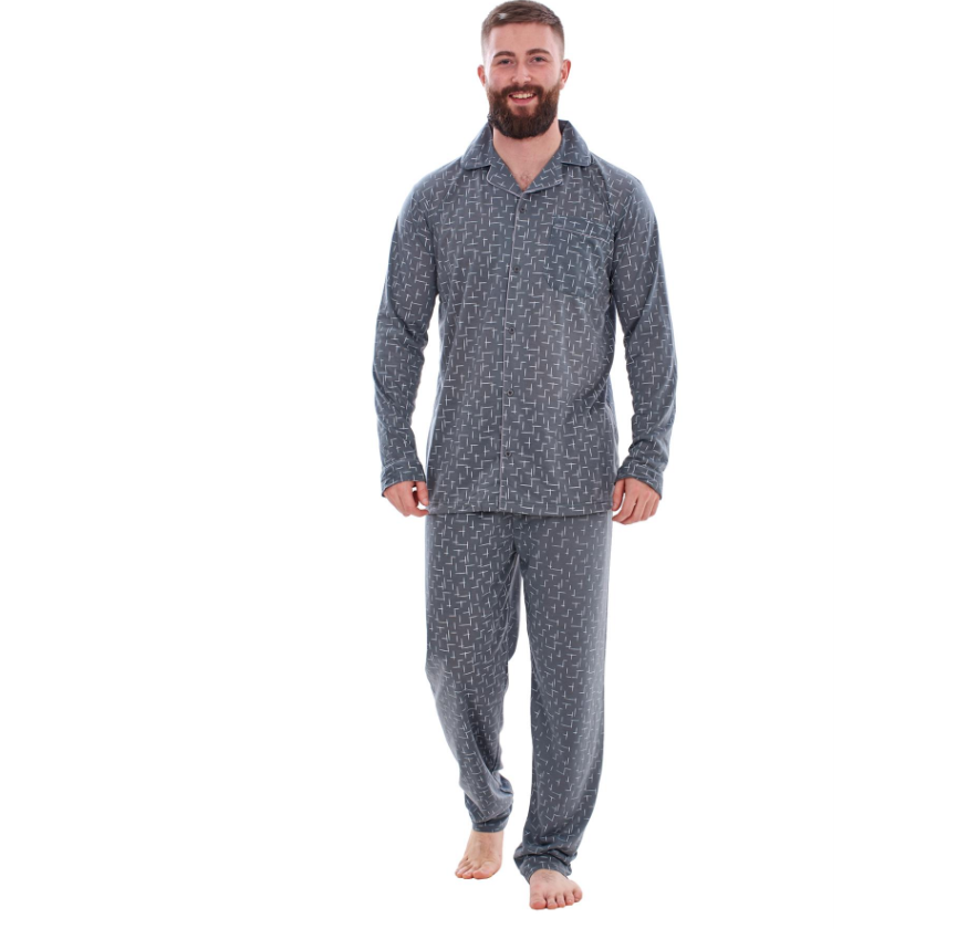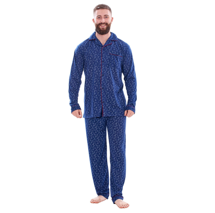 • Mens Classic Pyjama Sets Printed Rich Cotton Long Sleeve Nightwear Soft PJ's