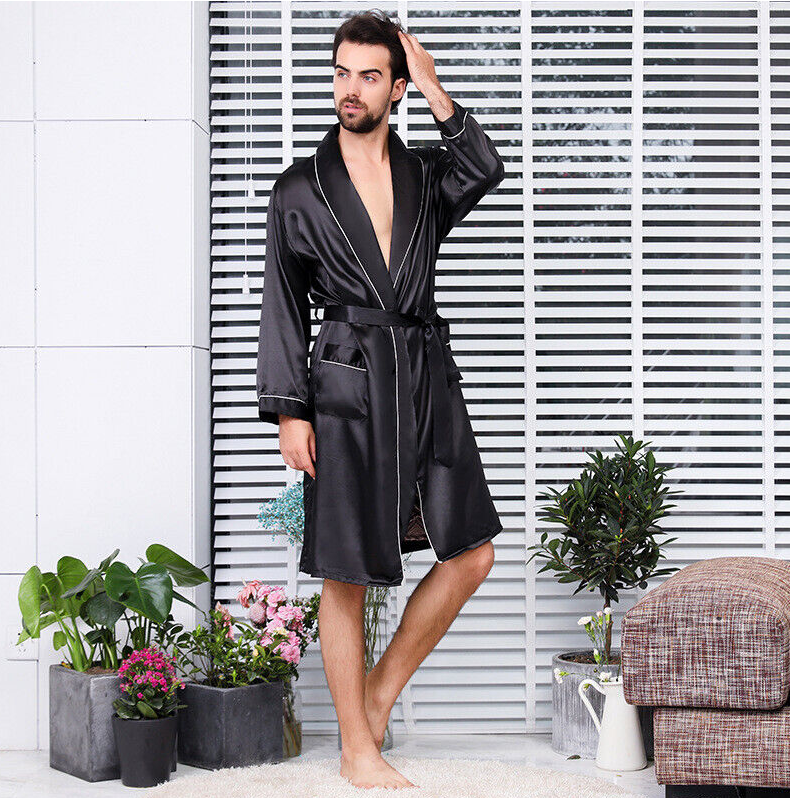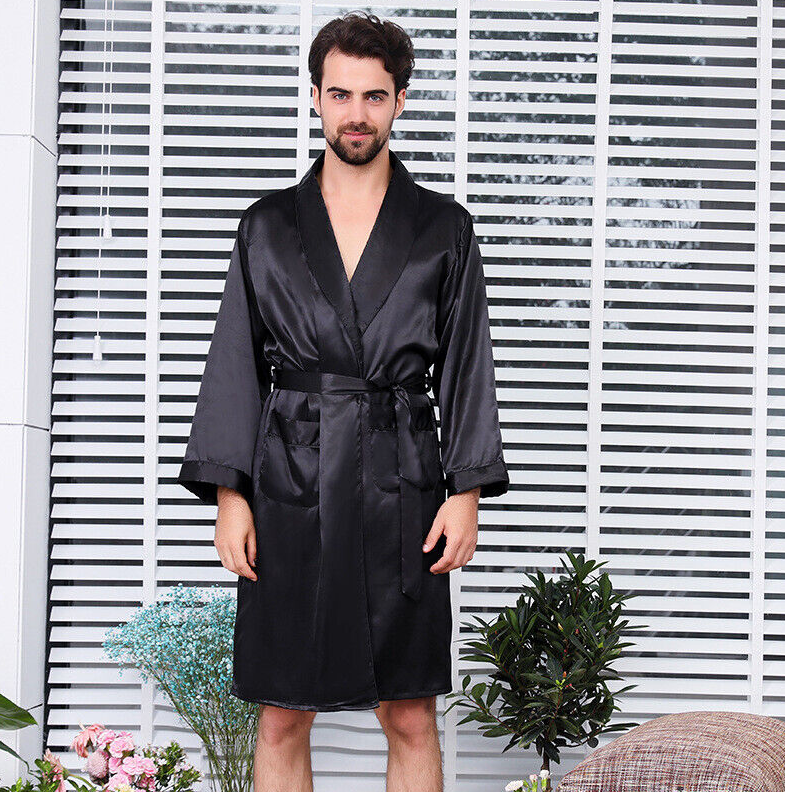 * Item Description:Chinese Satin Men Kimono Robe Gown Bathrobe Dress Pajamas Sleepwear