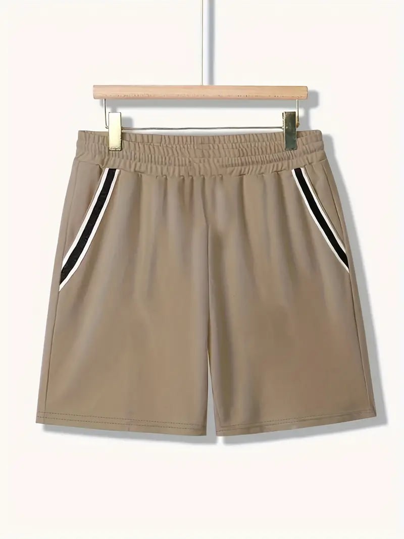 Men's Trendy Summer Striped T-Shirt Shorts Set, Oversized Casual Sports 2Pcs Outfits, Men's Clothing, Plus Size