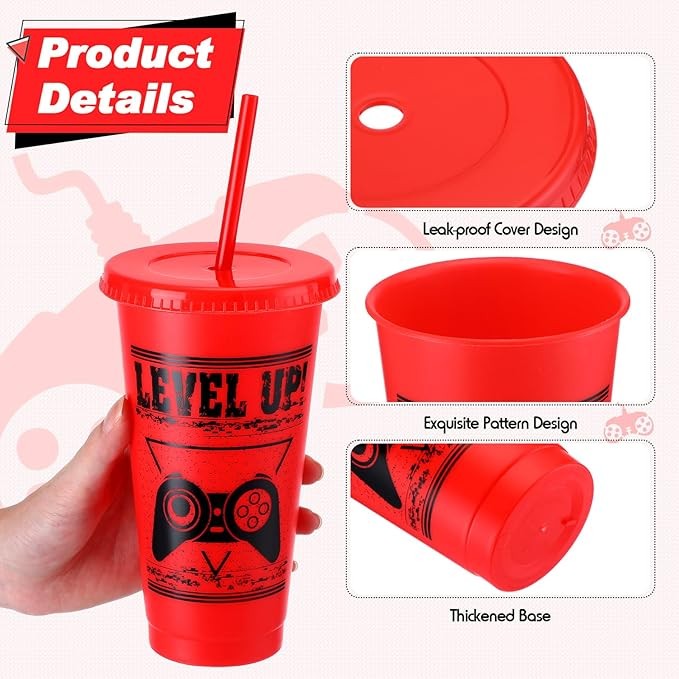 • Rich in Quantity: you will receive 12 pcs video game plastic tumblers with lids and straws, available in 6 colors, namely gray, red, yellow, green, black and blue, enough quantity to meet your daily use and replace requirements, very suitable for the game theme party