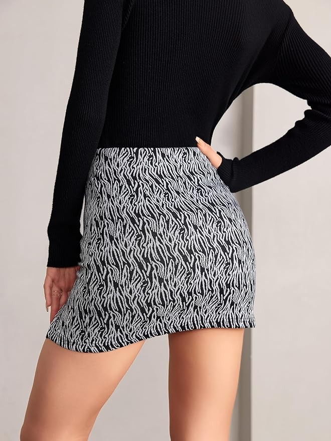Milumia Women's Elegant High Waist Slit Hem Houndstooth Print Bodycon Mini Skirt