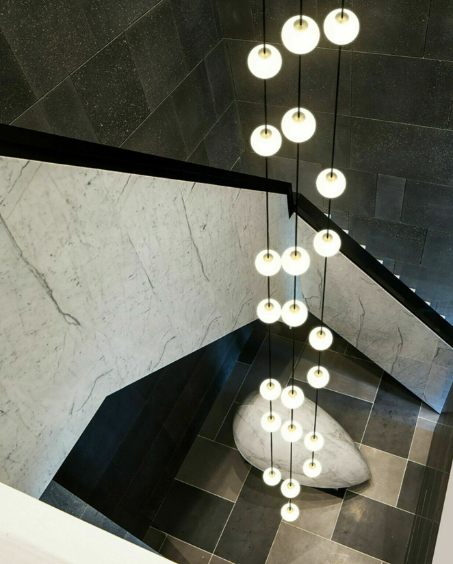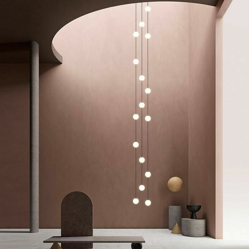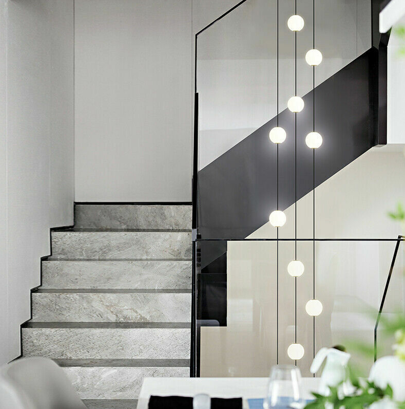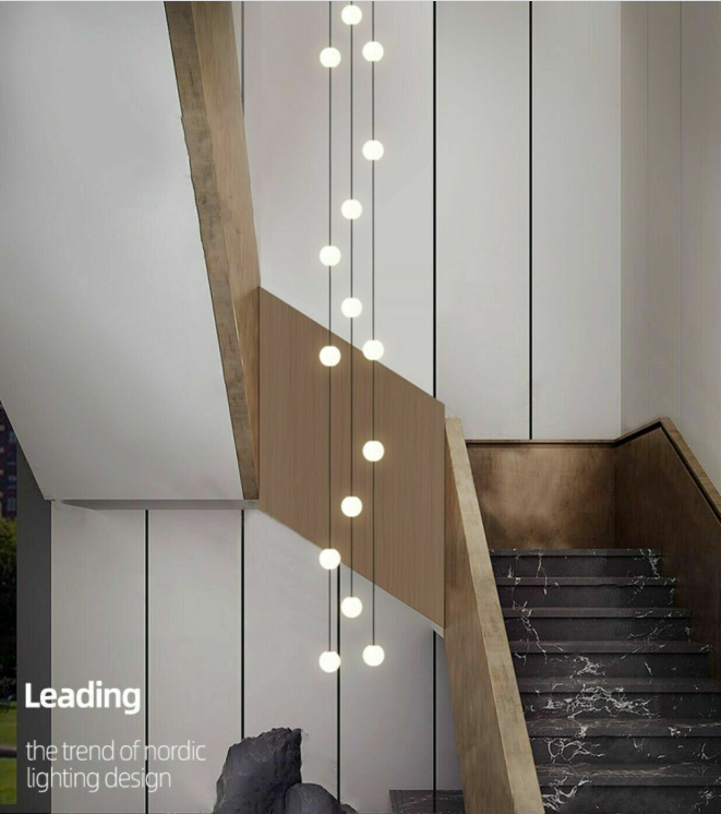 Modern LED glass ball Staircase long chandelier villa duplex lighting pendant