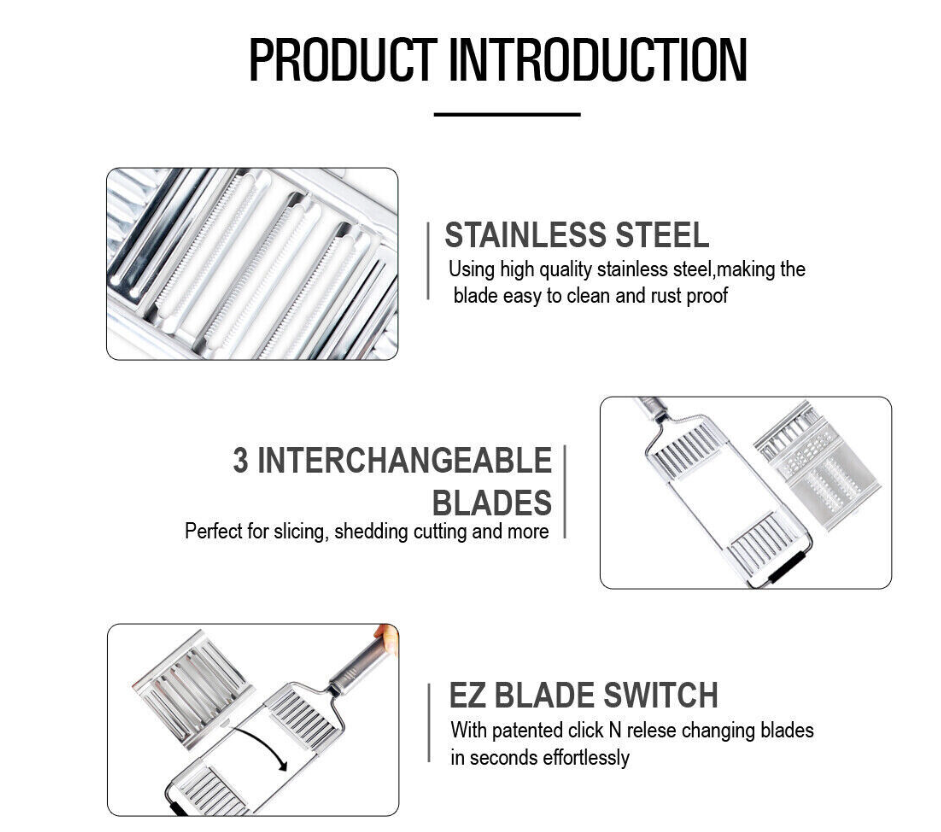 Safe and durable 304 stainless steel material is tough and rust-resistant and won't come into direct contact with food, giving your kitchen a long shelf life without worrying about shredding affecting the taste of food or fruit.