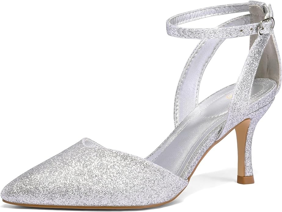 mysoft Women's Pumps Shoes Pointed Toe Kitten Low Heels Stiletto Ankle Strap Closed Toe Wedding Party Dress Sandals