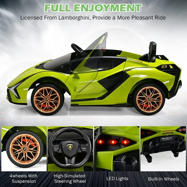 ?LICENSED BY LAMBORGHINI: Italian Lamborghini licensed ride on car, scaled down according to Lamborghini real car. From Lamborghini’s design concept, details determine quality. High appearance level ride on toy car with full functions. Adopts the mechanical arm of automobile manufacturing industry to spray evenly, so that the bright paint surface does not fade.