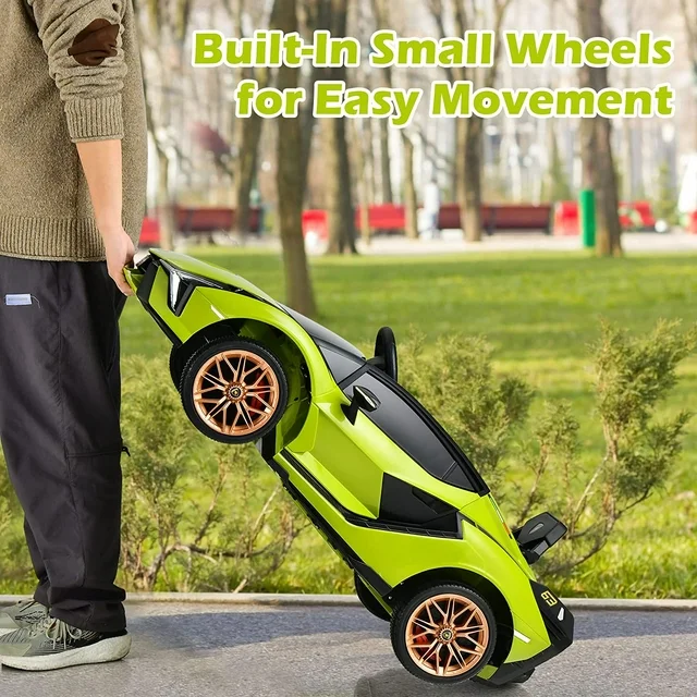 ?PERFECT DESIGN: Lambo doors meet the imagination of children. Using simulation pneumatic levers, the doors open more smoothly. The doors turn up, allowing the kids to get on and off more gracefully. Real LED lights bring a more real driving experience to your baby. The rear of the kids’ car has hidden small wheels, which make it easy to move and carry the car.