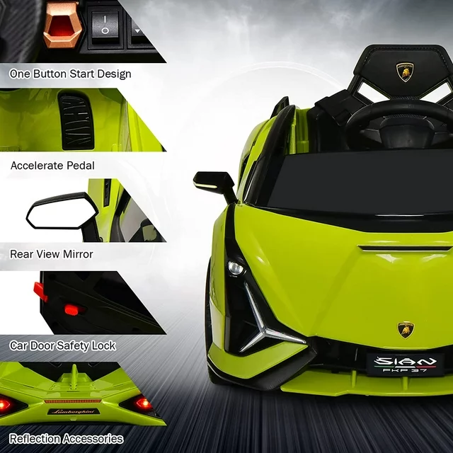 OLAKIDS 12V Licensed Lamborghini Sian Kids Ride On Car with Parent Remote Control, Spring Suspension, MP3 Player, Electric Toy Roadster Carbon Fiber Textured for Toddler (Green)
