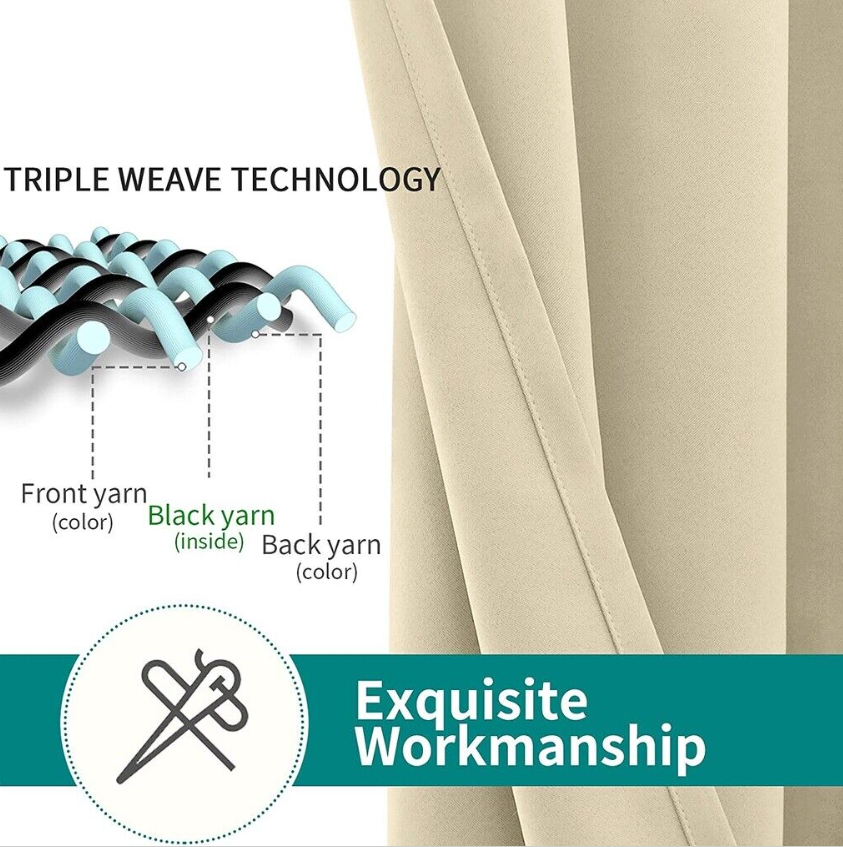 Pencil Pleat Thermal Thick Blackout Curtains Pair Ready Made Eyelet Ring top