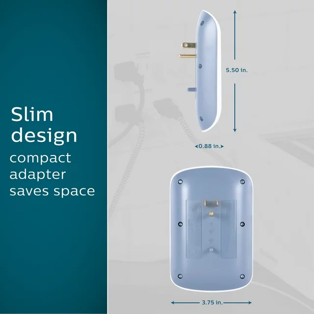 Space Saving: Surge protection can be sleek with this slim outlet adapter\u2019s compact design.
