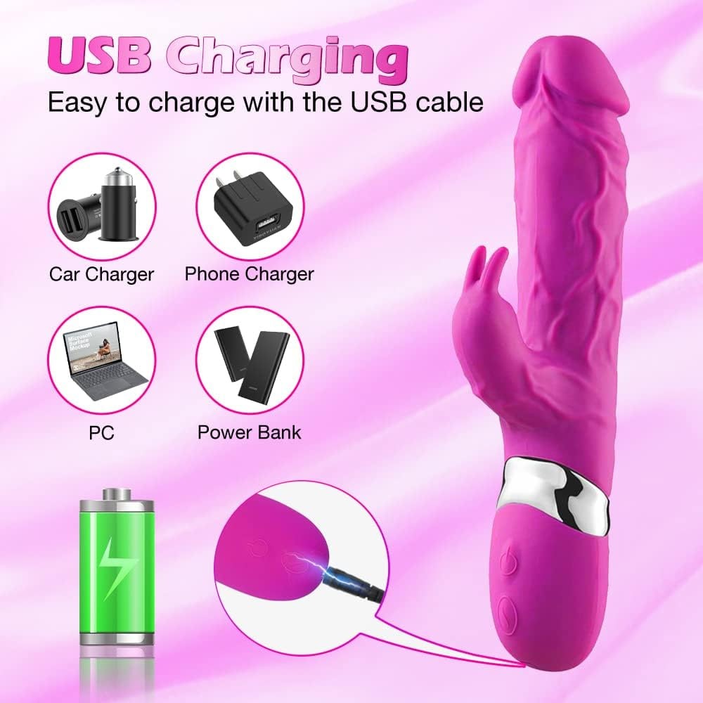 【2-in-1 Double Clitoralal Stimulator Vibrator】This realistic dildo vibrator sex toy has a powerful independent rabbit-shaped motor, dual motors, and 7 different vibration modes, which can bring you a unique and extreme sexual experience. This sex toy can slide to stimulate the G-spot and has a unique rabbit vibrator that can rub to provide dual stimulation, male sex toys clitoris vibrator.