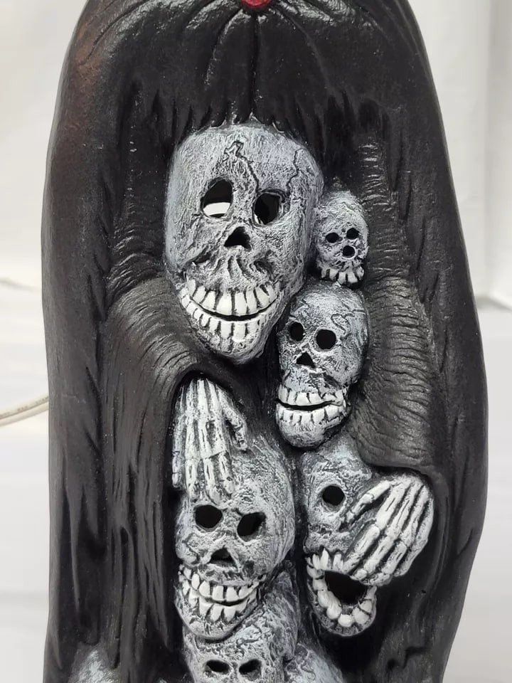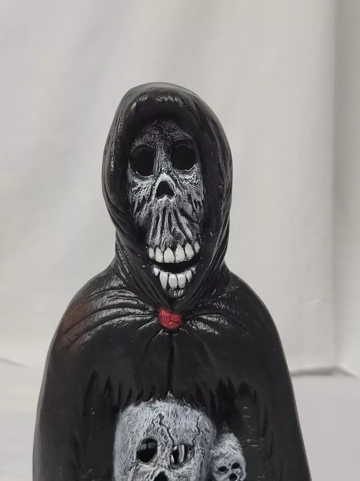This rare ceramic figurine is perfect for Halloween enthusiasts who love to add unique touches to their decor. Featuring a Grim Reaper skeleton design, this 13-inch ghoul is sure to spook visitors and create a spooky atmosphere.