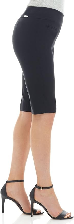 COMFORT FIT: These ladies stretch shorts are a pull-on style (which means no zippers or buttons). The wide, smoothing contour waistband has a hidden elastic inside that ensures these dress shorts for women are incredibly comfortable. Added back darts for a perfect fit, no gaping!