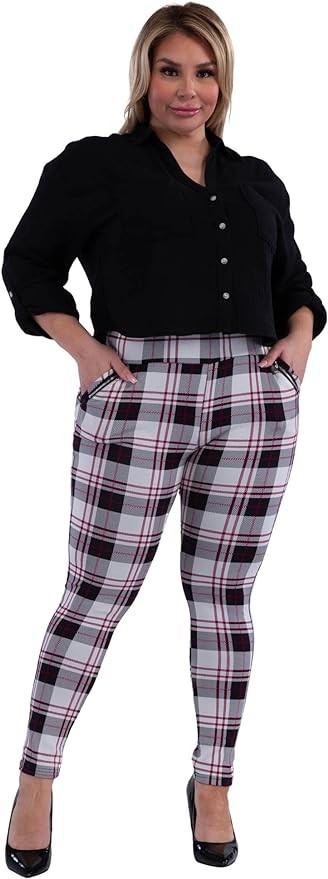 • PLUS SIZE, PLAID PRINT, HIGH-RISE, TREGGINGS SKINNY PULL ON PANTS