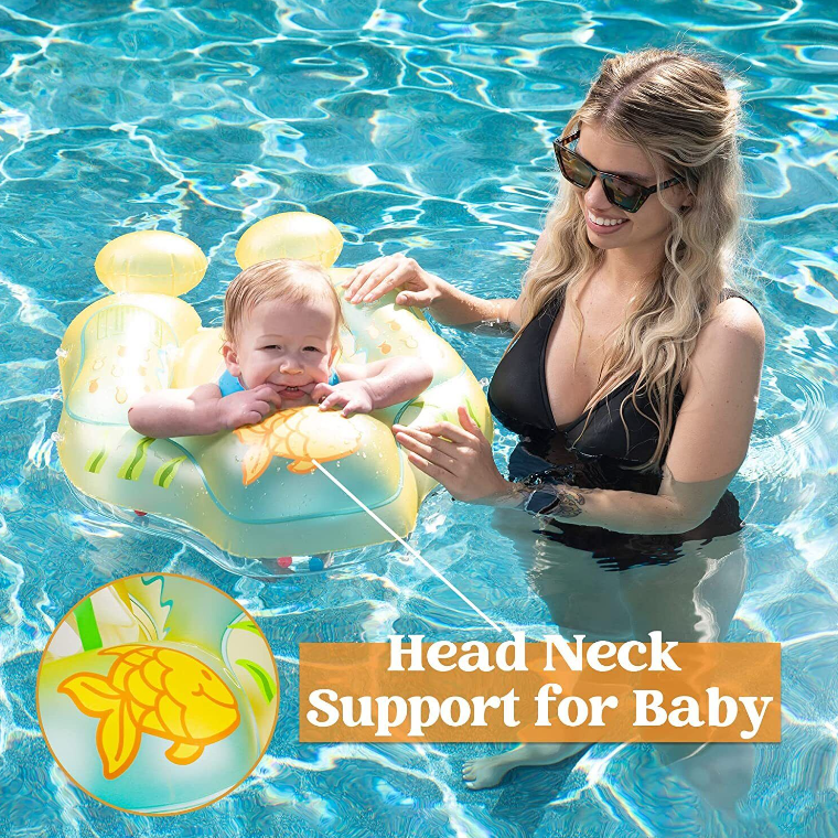 Sloosh Goldfish Pattern Inflatable Baby Swimming Float Detachable Sun Canopy L