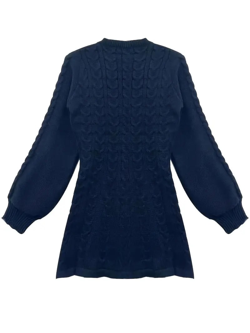 solid cable knit dress elegant v neck lantern long sleeve dress womens clothing details 1solid cable knit dress elegant v neck lantern long sleeve dress womens clothing details 1