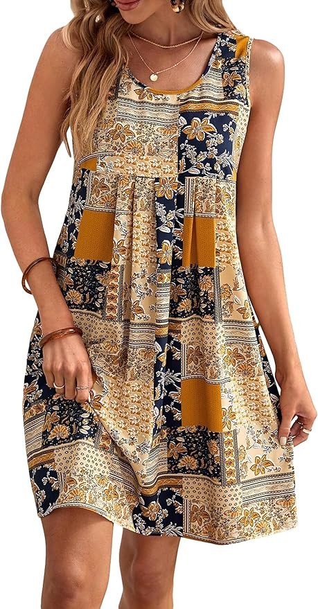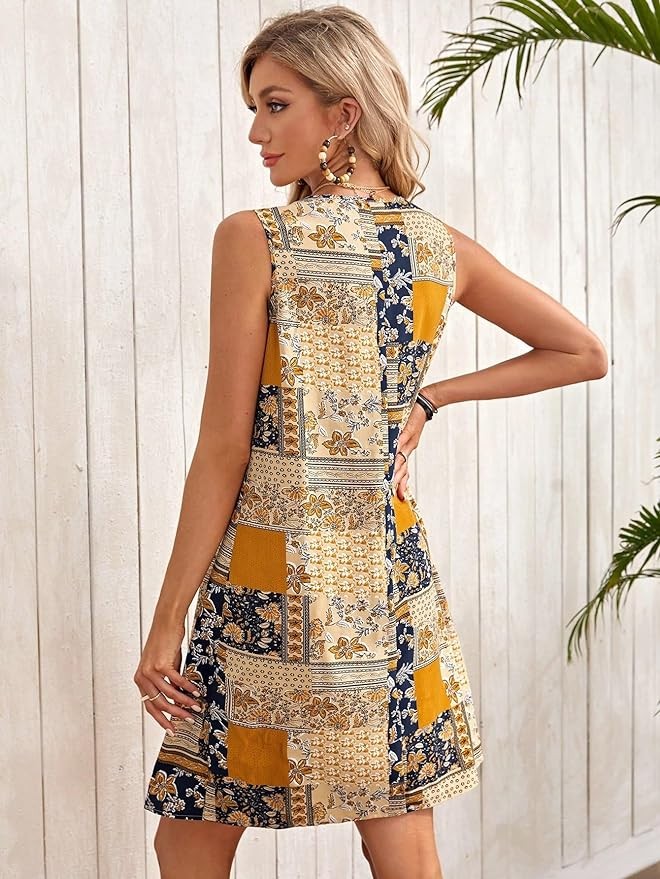 • Feature: Floral, scoop neck, sleeveless, high waist, flared hem, boho short dresses, making you look casual and trendy