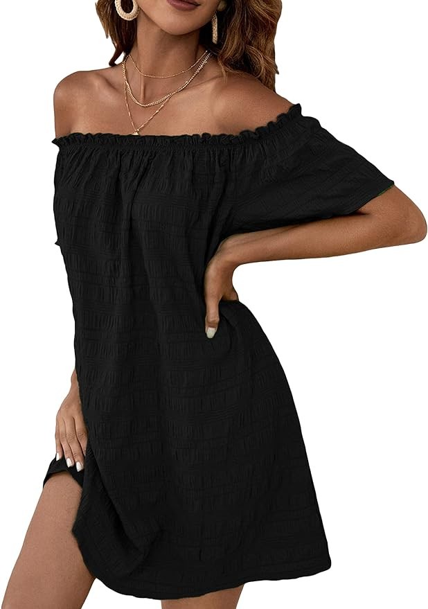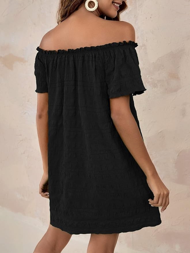 SOLY HUX Women's Sundress Off The Shoulder Short Sleeve A Line Tunic Mini Dress
