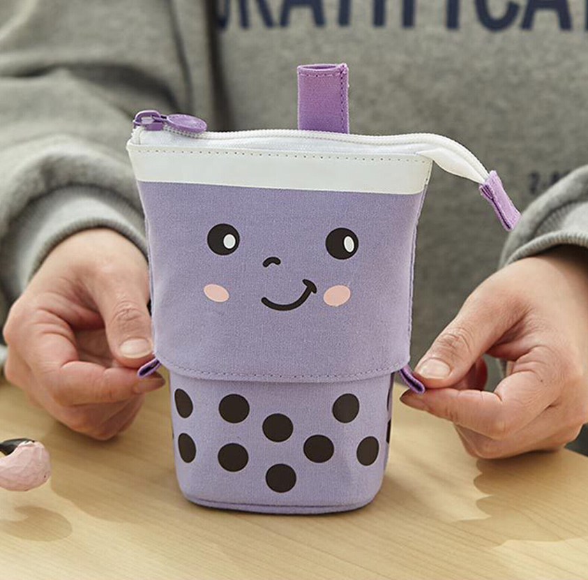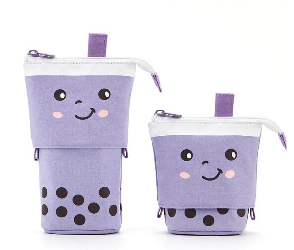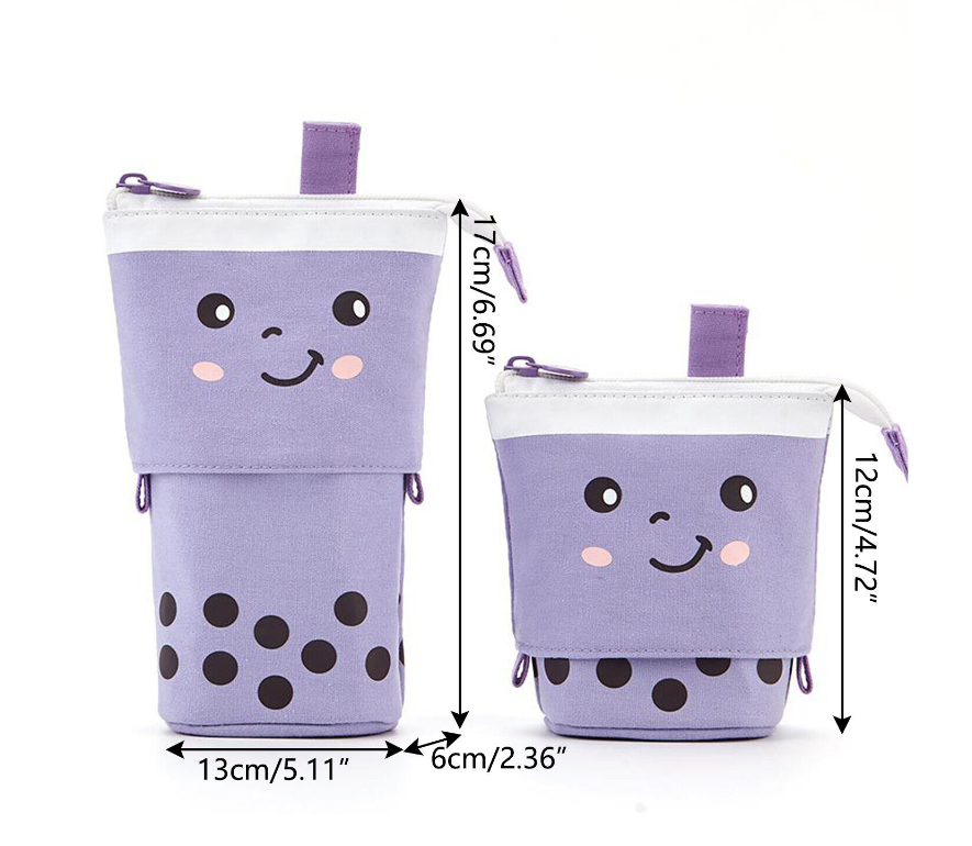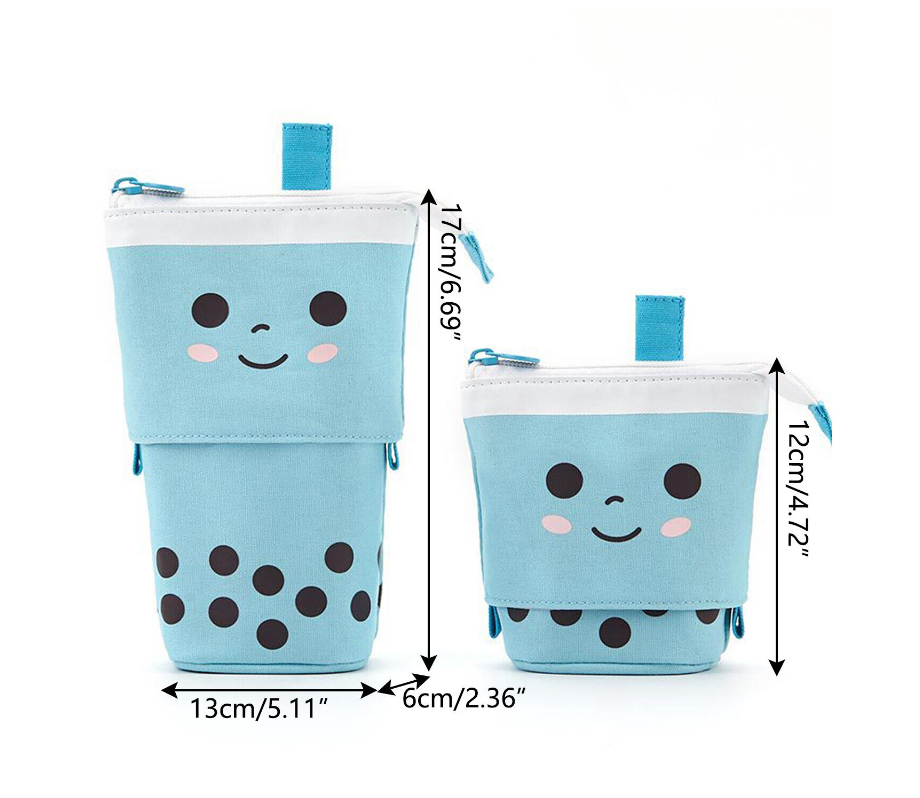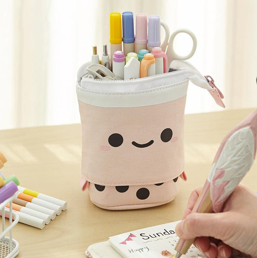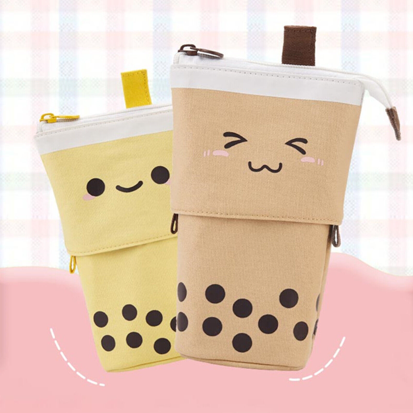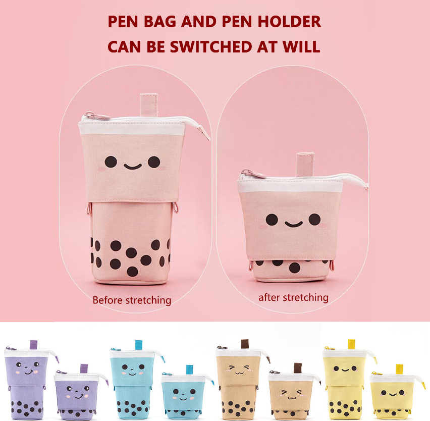 Cute Milk Tea Pen Bag Telescopic Pen Holder Stand-up Stationery Pencil Case