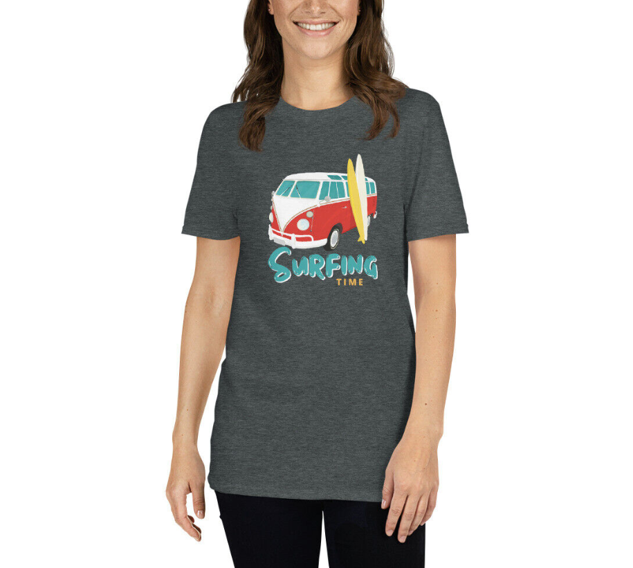 Surfing Time VW Bus Sea Summer Paradise Womens Mens Unisex Short-Sleeve T-Shirt