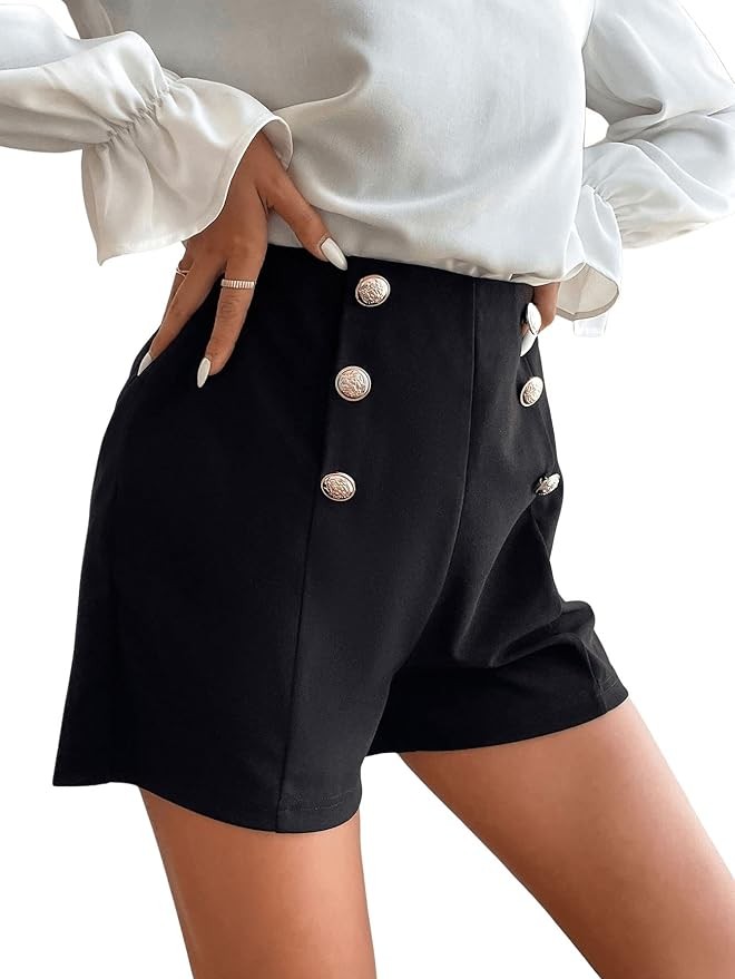 SweatyRocks Women's Casual High Waist Double Breasted Workwear Shorts