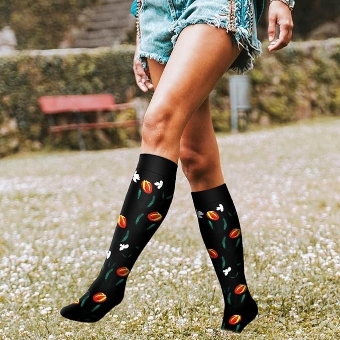 BRAND NEW FLORAL SERIES STYLE - Don't want to go back to wearing ugly white or tan stockings? Updating your closet through these new attractive options.Our nature floral series design socks really do the trick and are stylish.There still the same thing but bright and cheerful and can lift your spirits!