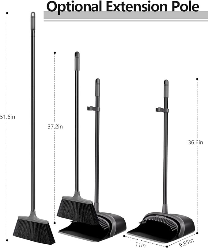 Long Handle Broom and Dustpan Set: The broom and dustpan set for home is upgraded with a 52’’ long broom handle, no bend over, allows you to choose the appropriate length of the broom and dustpan set for comfortable cleaning.