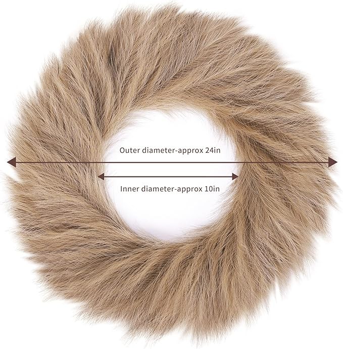 PREMIUM CRAFTSMANSHIP: This pampas grass wreath is crafted from high-quality silk, giving it a lush and natural appearance. Each wreath consists of 108 pampas stems, ensuring a dense and fluffy composition. With a diameter of approximately 24", it creates an eye-catching focal point that complements various design styles.