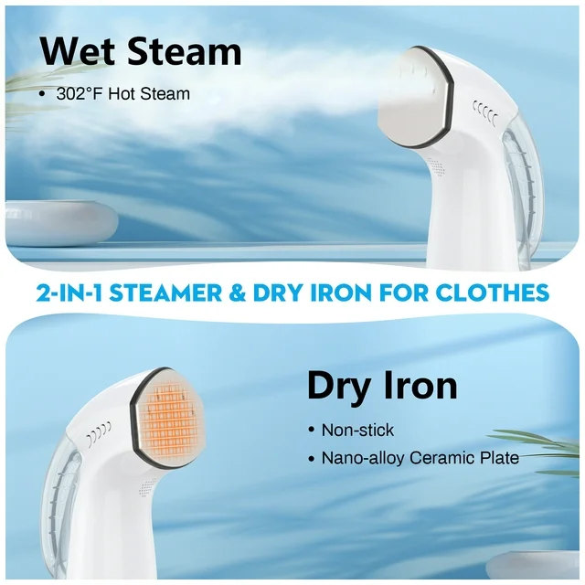 • PORTABLE/LIGHTWEIGHT/SAFE - This garment steamer is portable and lightweight, making it an ideal travel companion. The 7.3-ft power cord provides extended reach for added flexibility. Additionally, the steam iron includes heat-resistant gloves for added safety during use