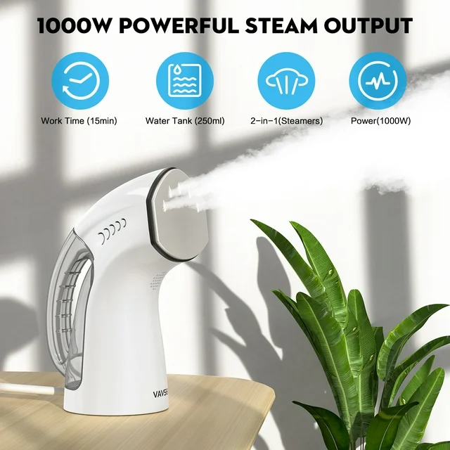 VAVSEA Handheld Garment Steamer 1000W Portable Steamer for Clothes, 250ml Water Capacity for Wrinkles,Steam,Soften,Clean,Sterilize,White
